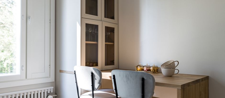 Erilaisilla lasiovilla saat elävyyttä keittiökalusteisiin. Kauneimmat astiat on kiva pitää esillä vitriinikaapissa. Lasiovien takana ne eivät kerää pölyä kuten avohyllyillä. Voit myös valita esimerkiksi vaatekomeron oven aukolla ja kirkkaalla peilillä. Eteisen kalusteissa osa ovista on usein toteutettu näin.